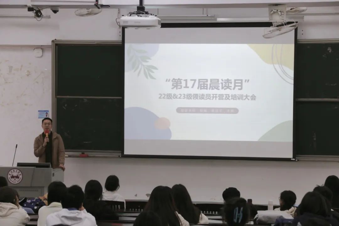 本次开营大会由黄冠文老师的致辞拉开序幕,他表示在开营仪式现场已经初步感受到大家对晨读月活动的热情,希望在后续的领读工作中也能继续保持,成为“冬天里的一把火”;其次黄老师还提出,期待随着晨读届数的累积,大家能把晨读精神延续传承下去。