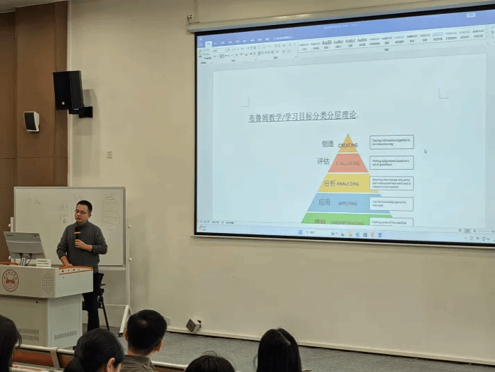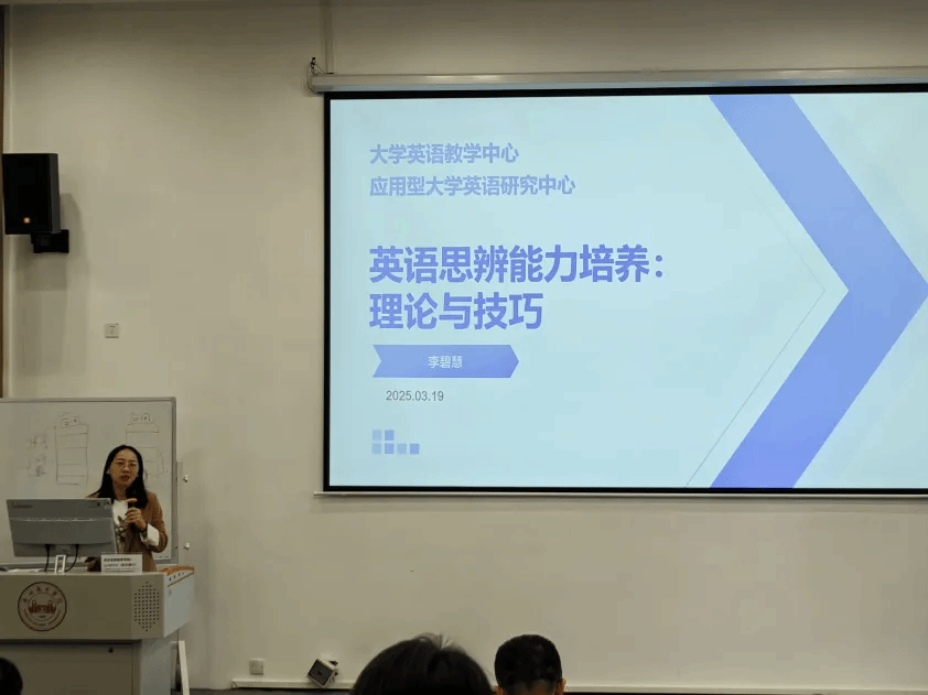 李碧慧副教授做了题为《英语思辨能力培养:理论与技巧》的讲座。李碧慧副教授首先在理论层面,以四、六级及雅思考试真题为切入点,系统介绍了思辨思维的概念、内涵,全景梳理了相关理论和主流模型,重点解读了思辨能力标准。其次,在教学实践层面,李碧慧副教授结合真实教学案例,详细介绍了大学英语词汇、句子、段落、篇章以及写作等各个教学环节中培养学生思辨能力的教学技巧。李碧慧副教授的报告理论架构严谨,教学策略创新兼具可操作性,是将大学英语教学与思维思辨能力培养深度融合的优秀示范,为解决大学英语教学痛点提供了极具价值的教学思路和方法,对大学英语教师的教学实践能力提升有着极为显著的帮助。