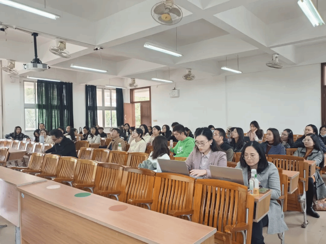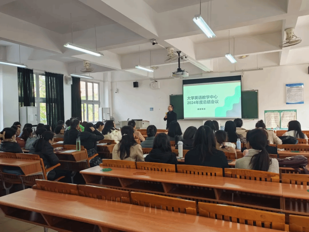 接着是陈剑波主任对2024年的大英工作进行回顾和总结。首先,陈主任肯定了大英中心教职员工们本年度的工作,圆满顺利地完成了学校给予的教学任务和人才培养任务。陈主任还充分肯定了大英中心教师在国家级和省级教学比赛以及指导学生参加各类高水平竞赛中取得的优异成绩;也对参与组织大英中心各类大型学生活动的老师表示感谢。他们的努力让南院学子们的知识、能力得到挥洒,提升了他们的精神风貌还有学生之间的英语学习氛围。